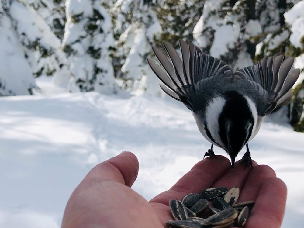 When we talk about the cute little friendly chickadees and this particular hike being a great way to interact with nature, Tanya tells a story about being with a client in Incline Village. When she was gesturing toward the property lines, a chickadee just came and landed on her hand mid-conversation. The client jokingly called her the “chickadee whisperer.”